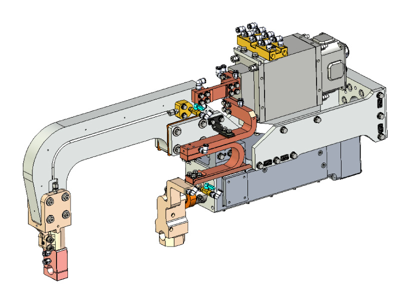 We manufacture and sell electric resistance welding machines (spot welding guns) used in a variety of production sites, including automobile manufacturers. By placing an electrode on overlapping metal materials and applying pressure while passing electricity, welds can be completed quickly and efficiently. They are widely used in processes that require high quality and productivity, such as car body welding. We can flexibly customize our machines to meet the specifications of your production line and your needs.