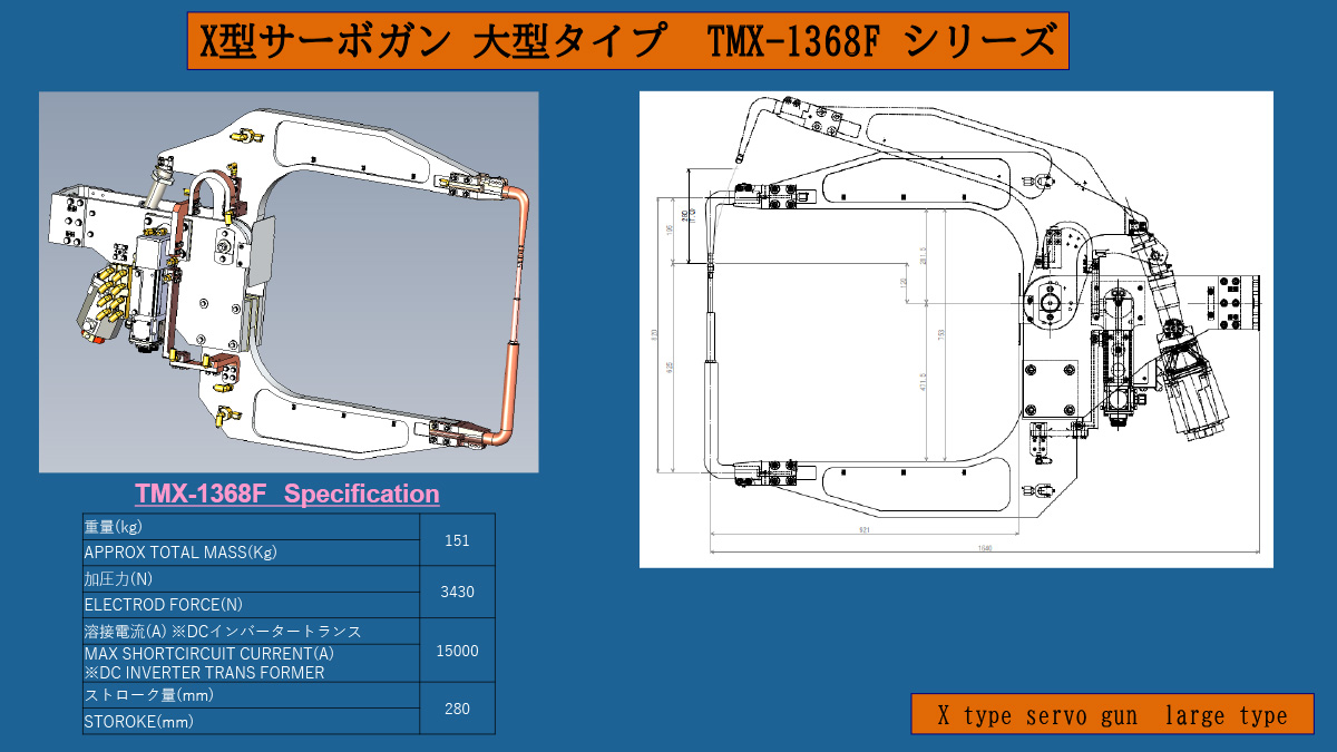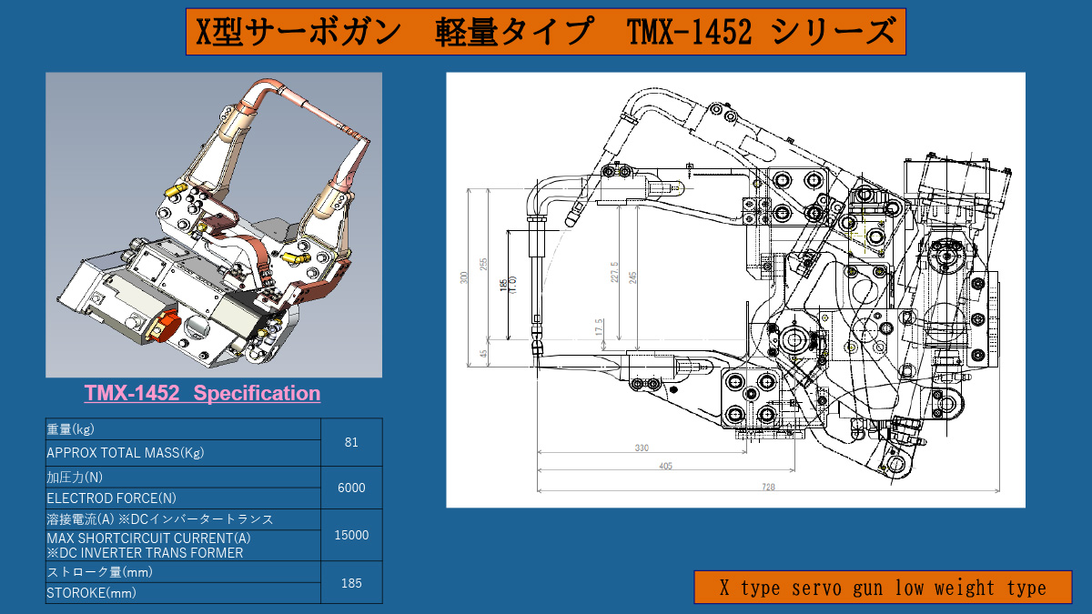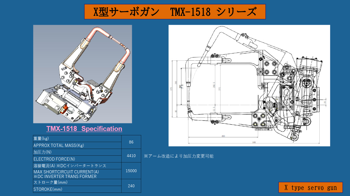 We manufacture and sell electric resistance welding machines (spot welding guns) used in a variety of production sites, including automobile manufacturers. By placing an electrode on overlapping metal materials and applying pressure while passing electricity, welds can be completed quickly and efficiently. They are widely used in processes that require high quality and productivity, such as car body welding. We can flexibly customize our machines to meet the specifications of your production line and your needs.